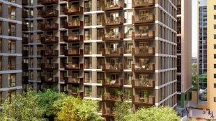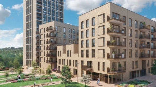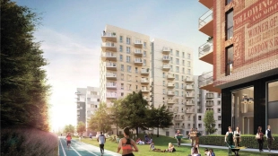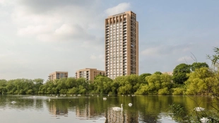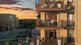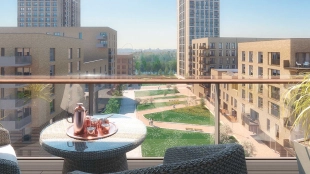 Premium residential quarter on the historic Nestlé factory site near Heathrow. Apartments feature panoramic glazing, balconies overlooking landscaped parks, and art deco-inspired architecture.