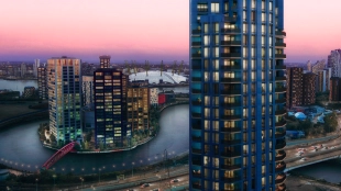 Cerulean Quarter is a 32-story, 215-unit apartment complex in Canning Town. The building with a strict modern architecture is finished with neutral color panels. The complex offers apartments from 1 to 3 bedrooms with finished finishes.